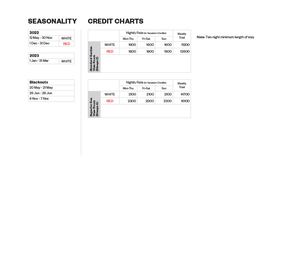 This is an Associate Resort. Associate Resorts is a Developer benefit and at its sole discretion, has, from time to time, made available various Associate Resorts to Premier owners who are in good standing. Access is for a limited duration, subject to additional restrictions and may be added, removed or modified by the Developer without notice. Credits used towards this benefit must have a minimum of six months (180 days) validity to be accepted. Housekeeping token/s or a fee must be tendered when utilising this benefit. Complimentary housekeeping cannot be used in conjunction with this benefit. The booking window to make a reservation at an Associate Resort may vary by location or Lifestyle tier.